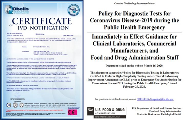 yabo鸭脖官网生物作为抗击疫情的一份重要力量,3月3日新型冠状病毒核酸检测试剂已获欧盟CE认证。此外,公司已经启动美国FDA EUA(紧急使用授权)申请,且Pre-EUA已受理,根据美国FDA 3月16日最新发布的新冠肺炎相关检测政策指南,yabo鸭脖官网生物新型冠状病毒核酸检测试剂盒可在美国供临床使用,服务当地疫情防控。