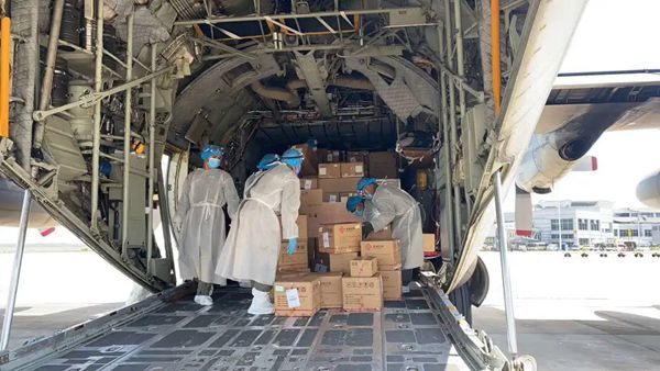 5月19日,由yabo鸭脖官网生物副总经理喻霞林、范旭带队的7人技术服务小组,携新冠病毒核酸检测试剂、仪器等抗疫物资乘国外政府派出的军机正式启程,奔赴东南亚国家,驰援全球抗疫,贡献yabo鸭脖官网力量。
